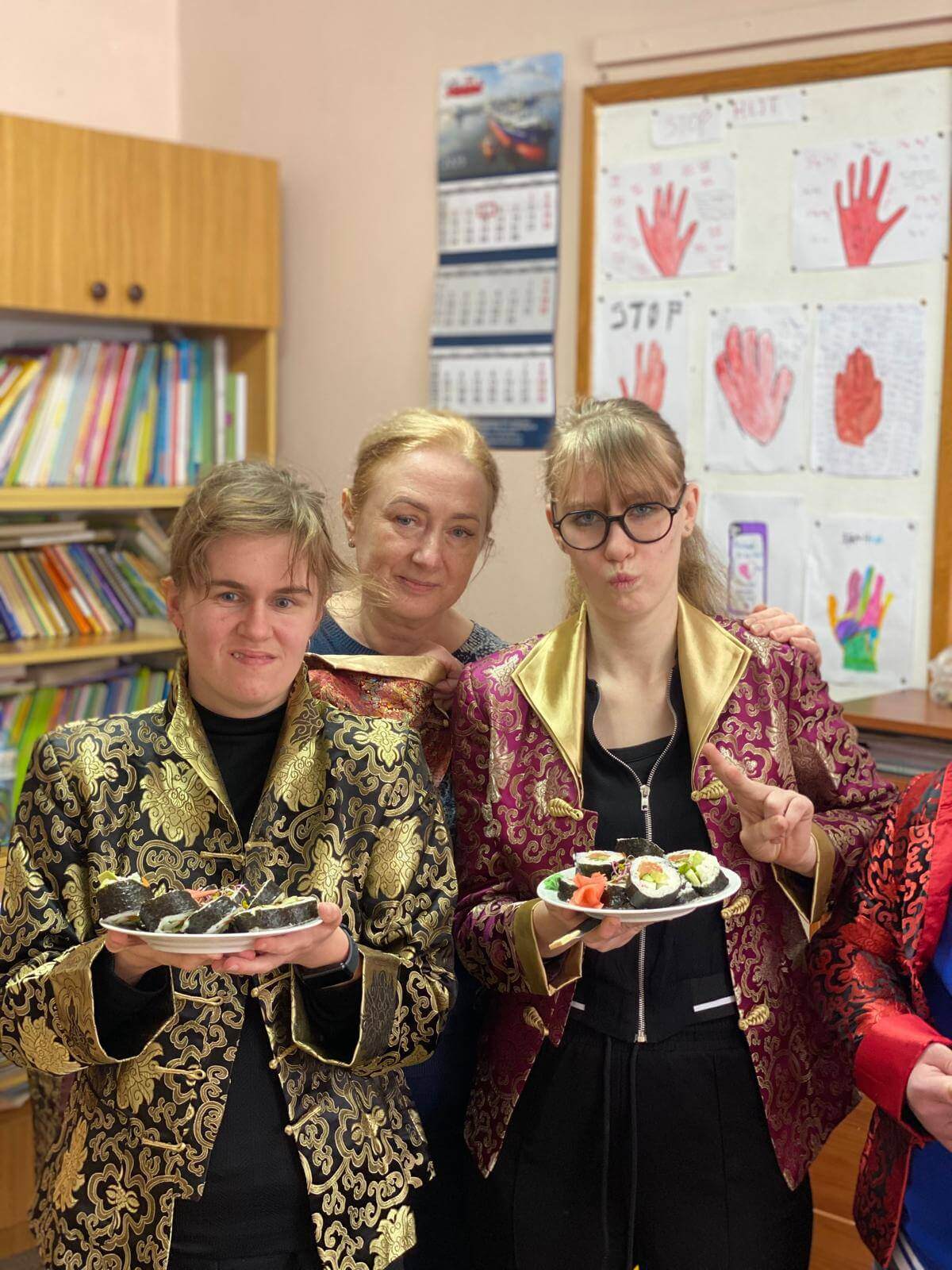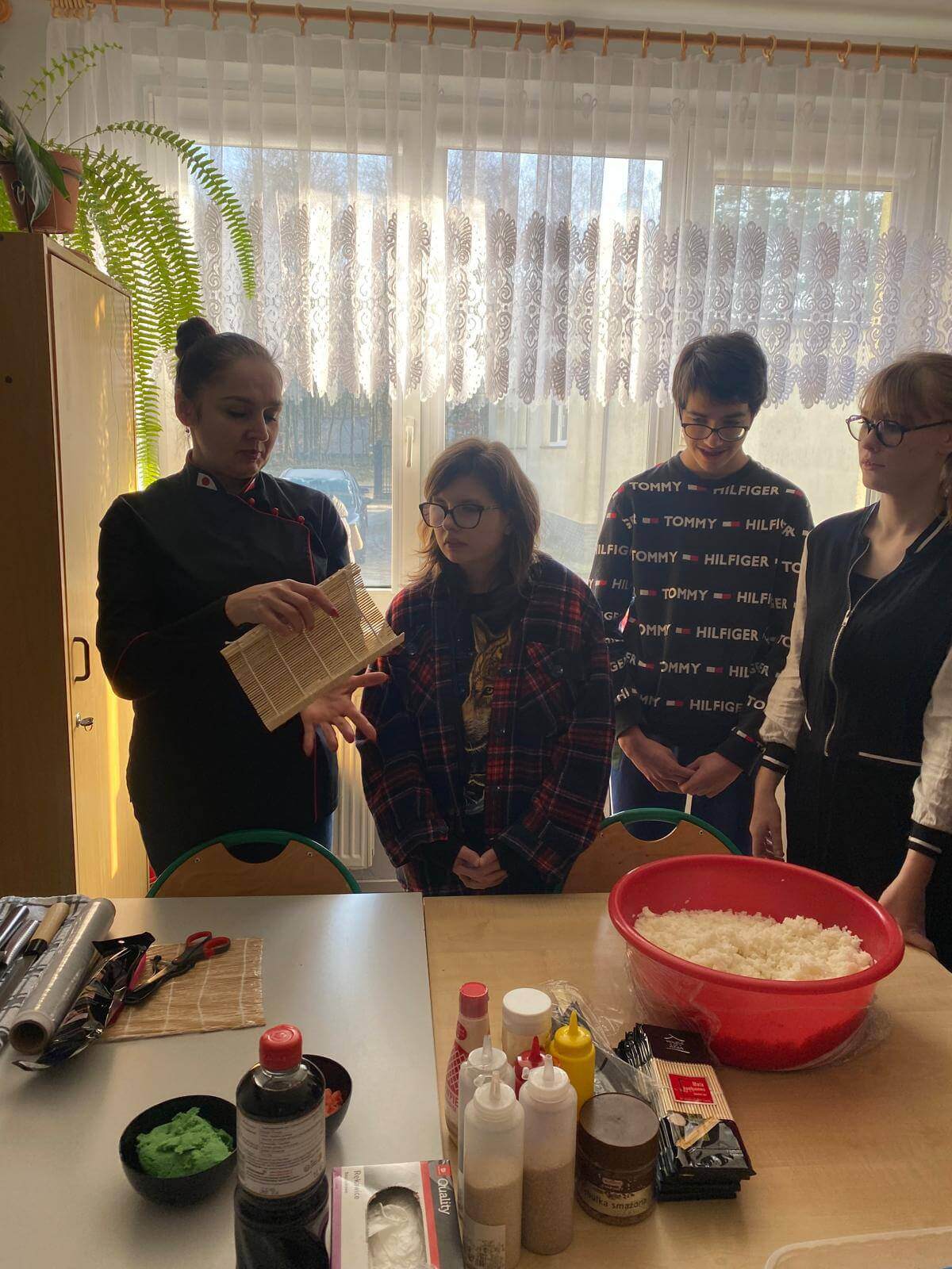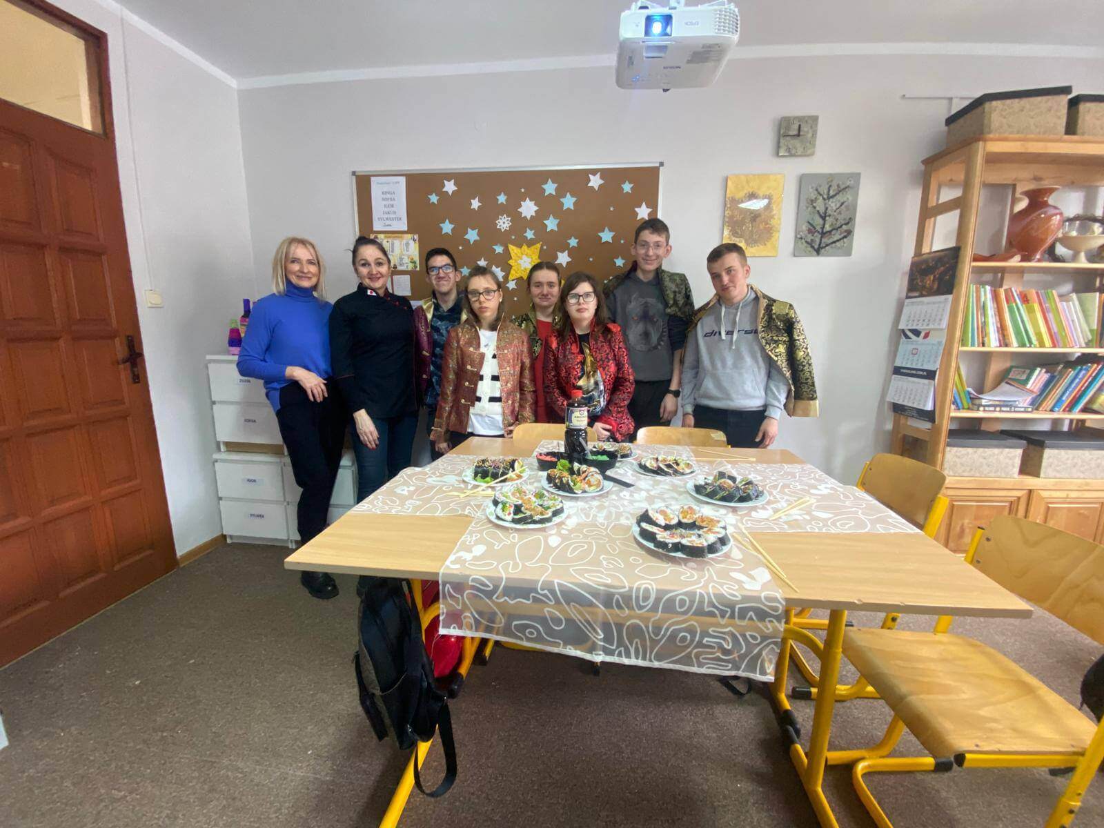 Warsztaty były nie tylko świetną zabawą, ale także doskonałą okazją do ćwiczenia umiejętności manualnych i kulinarnych. Uczniowie mieli możliwość spróbowania swoich sił w rolowaniu sushi, a efekty ich pracy były nie tylko piękne, ale i pyszne! Aby jeszcze bardziej poczuć japoński klimat, uczestnicy założyli tradycyjne stroje. Na zakończenie wszyscy mogli delektować się zieloną herbatą, która idealnie dopełniła smakowite doznania.