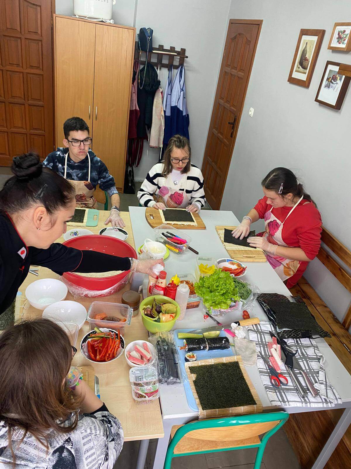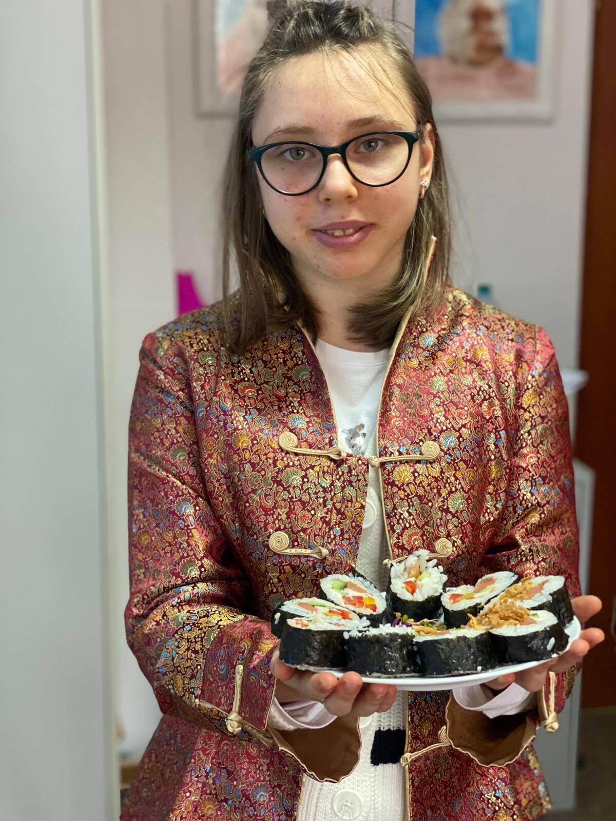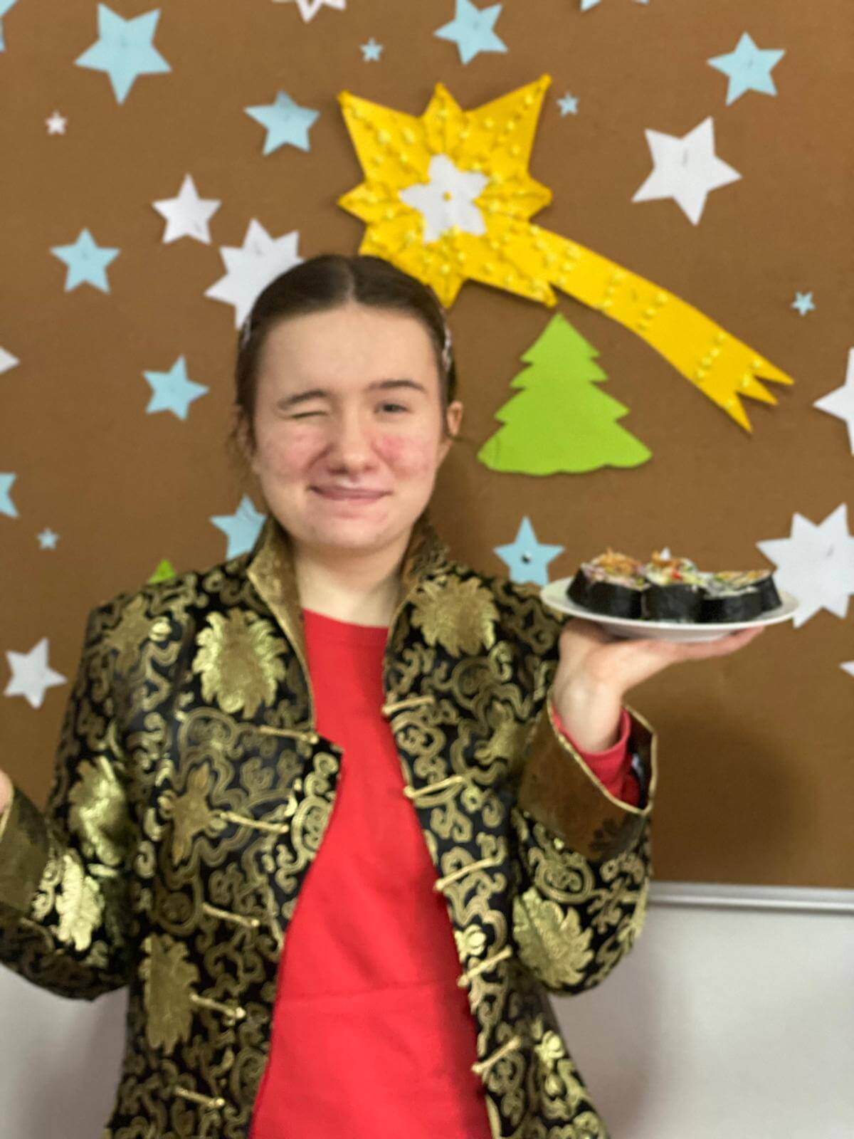 Warsztaty były nie tylko świetną zabawą, ale także doskonałą okazją do ćwiczenia umiejętności manualnych i kulinarnych. Uczniowie mieli możliwość spróbowania swoich sił w rolowaniu sushi, a efekty ich pracy były nie tylko piękne, ale i pyszne! Aby jeszcze bardziej poczuć japoński klimat, uczestnicy założyli tradycyjne stroje. Na zakończenie wszyscy mogli delektować się zieloną herbatą, która idealnie dopełniła smakowite doznania.