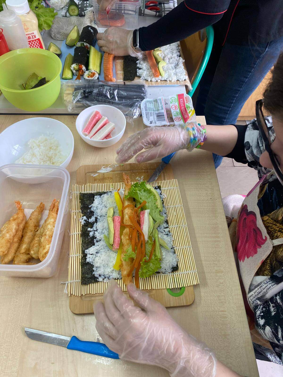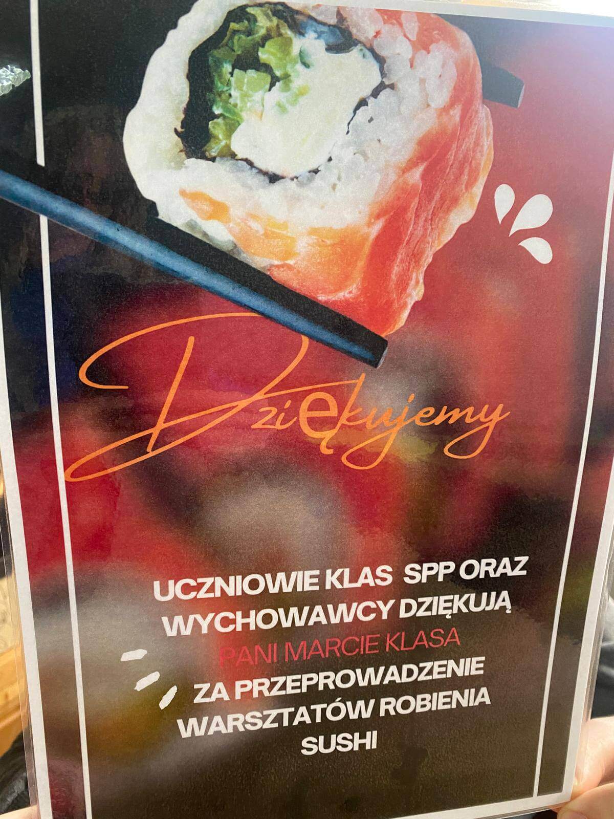 5 lutego 2025 r. uczniowie klas SPP mieli okazję wziąć udział w wyjątkowych warsztatach kulinarnych, podczas których uczyli się przygotowywać sushi. Zajęcia poprowadziła mama Igora, która z pasją wprowadziła nas w tajniki japońskiej kuchni.