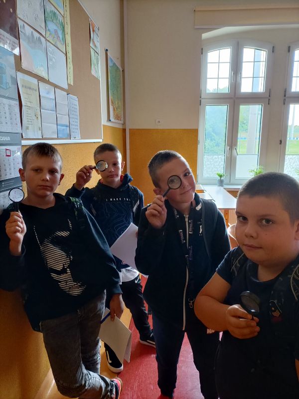 Na pierwszej godzinie zajęć ekologicznych uczniowie kl. 5 odkrywali porosty, które urosły przy naszej szkole, fotografowali je i nanosili na mapkę.