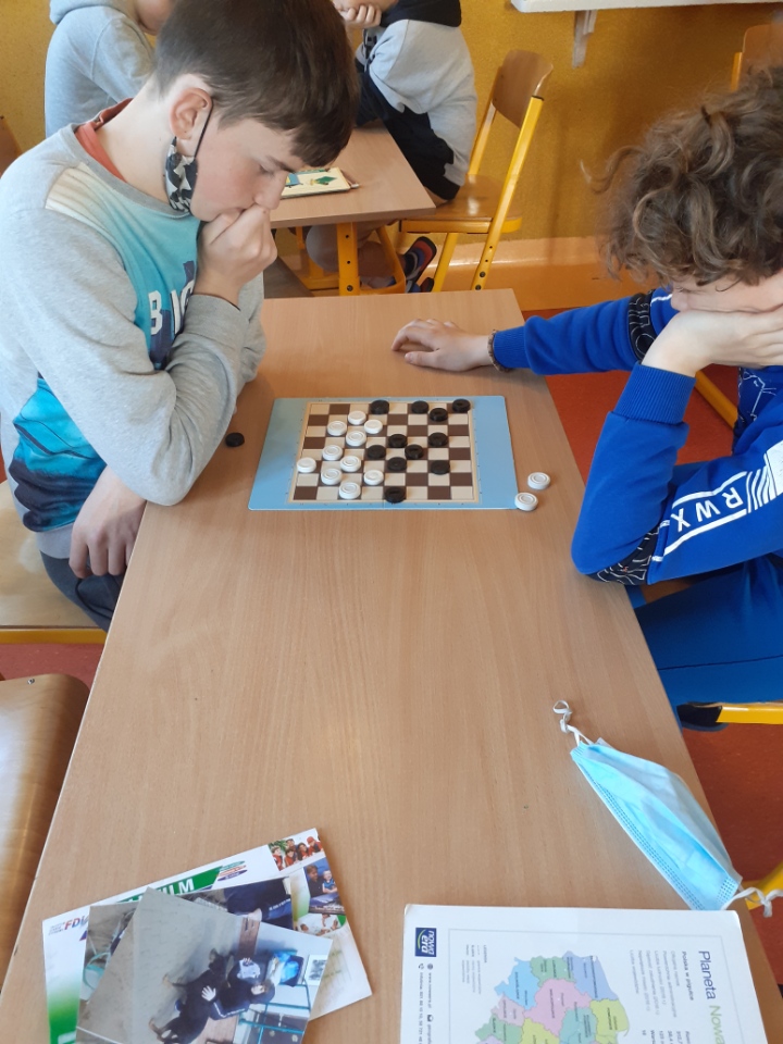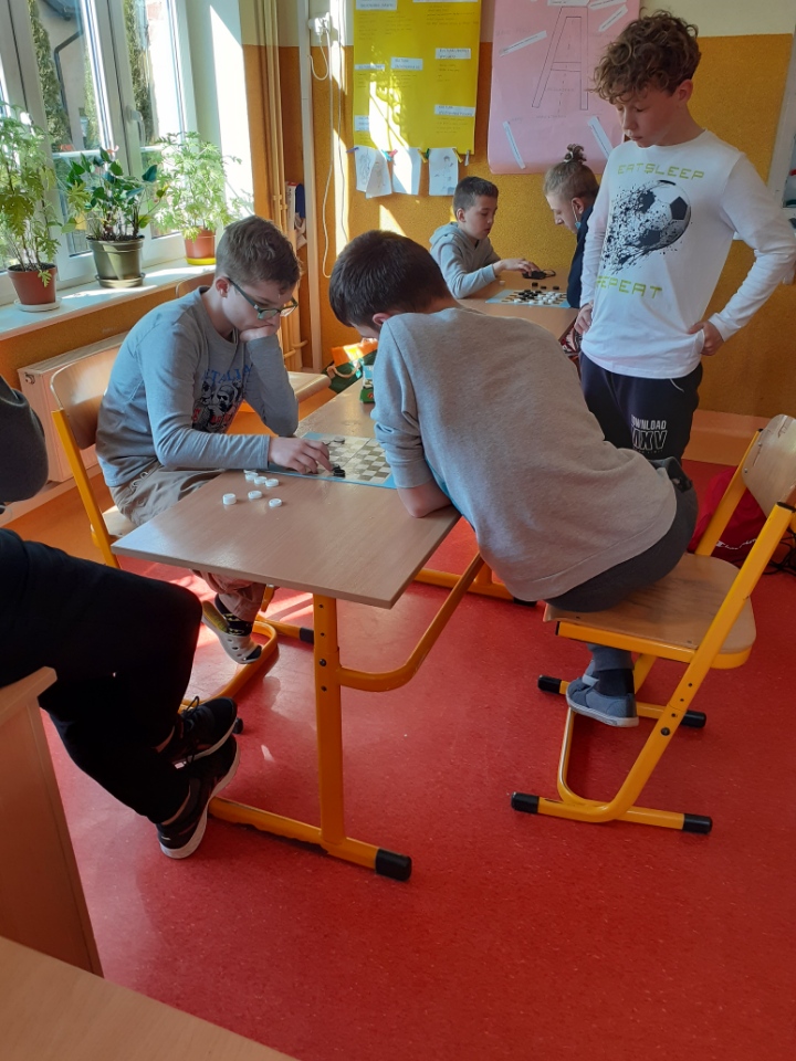 Dnia 25 marca 2022 r. zakończył się w naszej szkole Warcabowy Turniej, do którego zgłosiło się 32 zawodników. Chłopcy chcieli sprawdzić swoje umiejętności, bowiem warcaby to nie tylko gra planszowa, lecz także edukacyjna, która uczy koncentracji i cierpliwości, a także rozwija umiejętność planowania. Najpierw rozgrywki prowadzone były w klasach, a następnie zwycięzcy z poszczególnych klas rozegrali wielki finał.