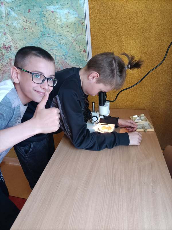 W ramach zajęć ekologicznych w kl. 5 i 6 odbyły się warsztaty poświęcone obserwacjom mikroskopowym. Uczniowie z ciekawością obserwowali preparaty mikro.. np. aparat ssący motyla, kość, a następnie preparaty makro… włos, sól, cukier, nić, kolorowa kartka reklamy. Wszyscy uczniowie bardzo aktywnie uczestniczyli w zajęciach. Śruba makrometryczna w mikroskopie została wykorzystana maksymalnie tak, by indywidualnie uczeń dostosował obraz do swego wzroku. Chłopcy żywo wyrażali swoje zdziwienie, a ochotnicy z kl.6 próbowali narysować to, co widzieli na tablicy multimedialnej...