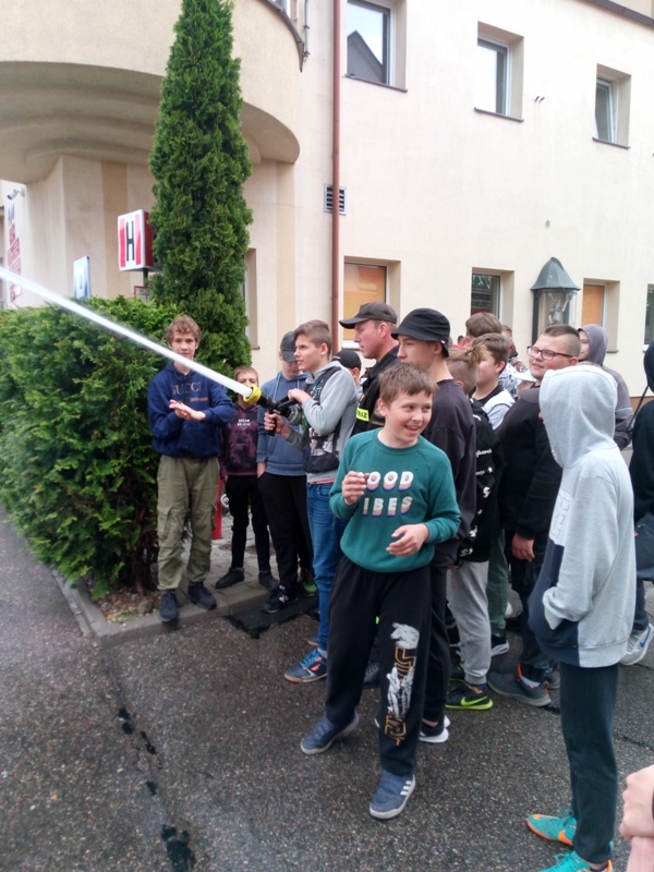 Z uśmiechem na twarzy przywitali ich panowie strażacy, którzy chętnie opowiedzieli o swojej pracy. Uczniowie mieli okazję zobaczyć wozy strażackie wraz z pełnym wyposażeniem. Przypomnieli również numer alarmowy 112. Dowiedzieli się, że strażacy nie tylko gaszą pożary, ale również pomagają w czasie powodzi, usuwają skutki wypadków drogowych, sprzątają połamane przez wichury drzewa itd. Na zakończenie każdy mógł wsiąść do wozu, by móc choć przez chwilę poczuć się jak prawdziwy strażak.