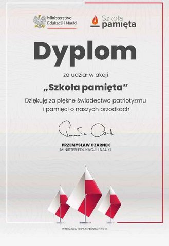 Za udział w akcji otrzymaliśmy dyplom Ministra Edukacji i Nauki