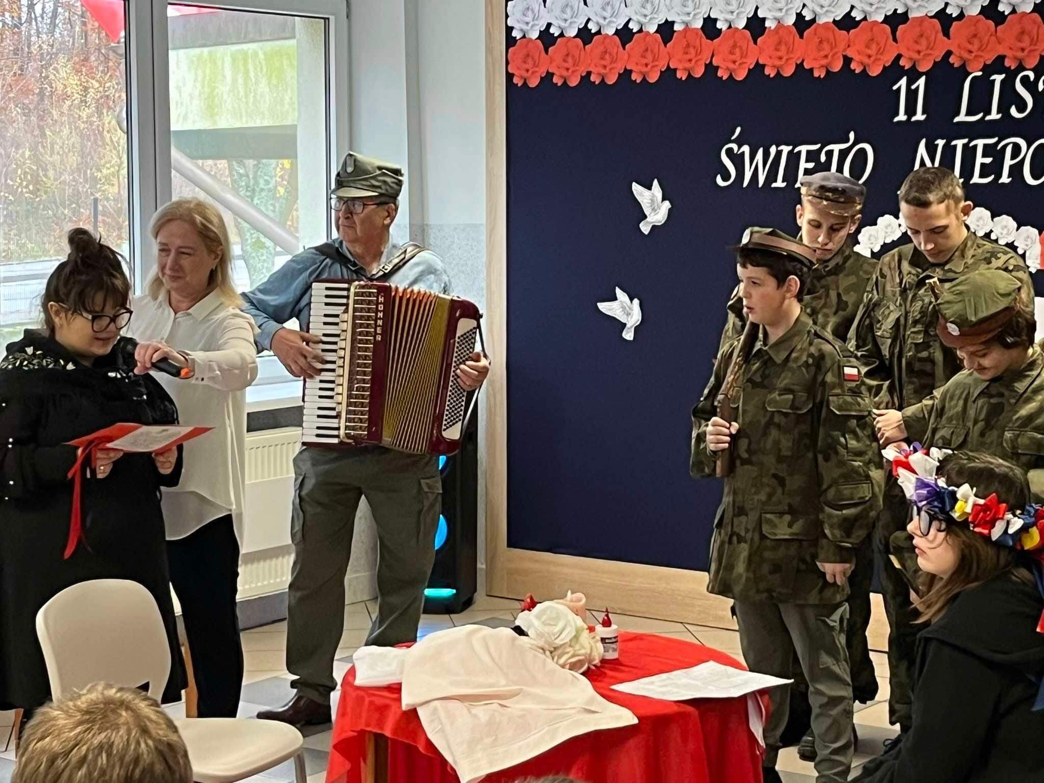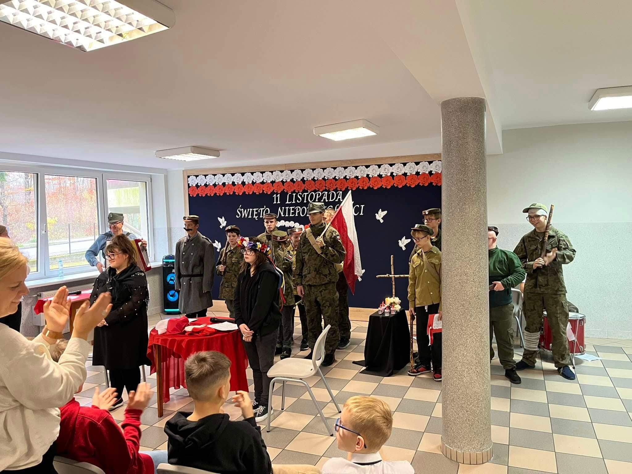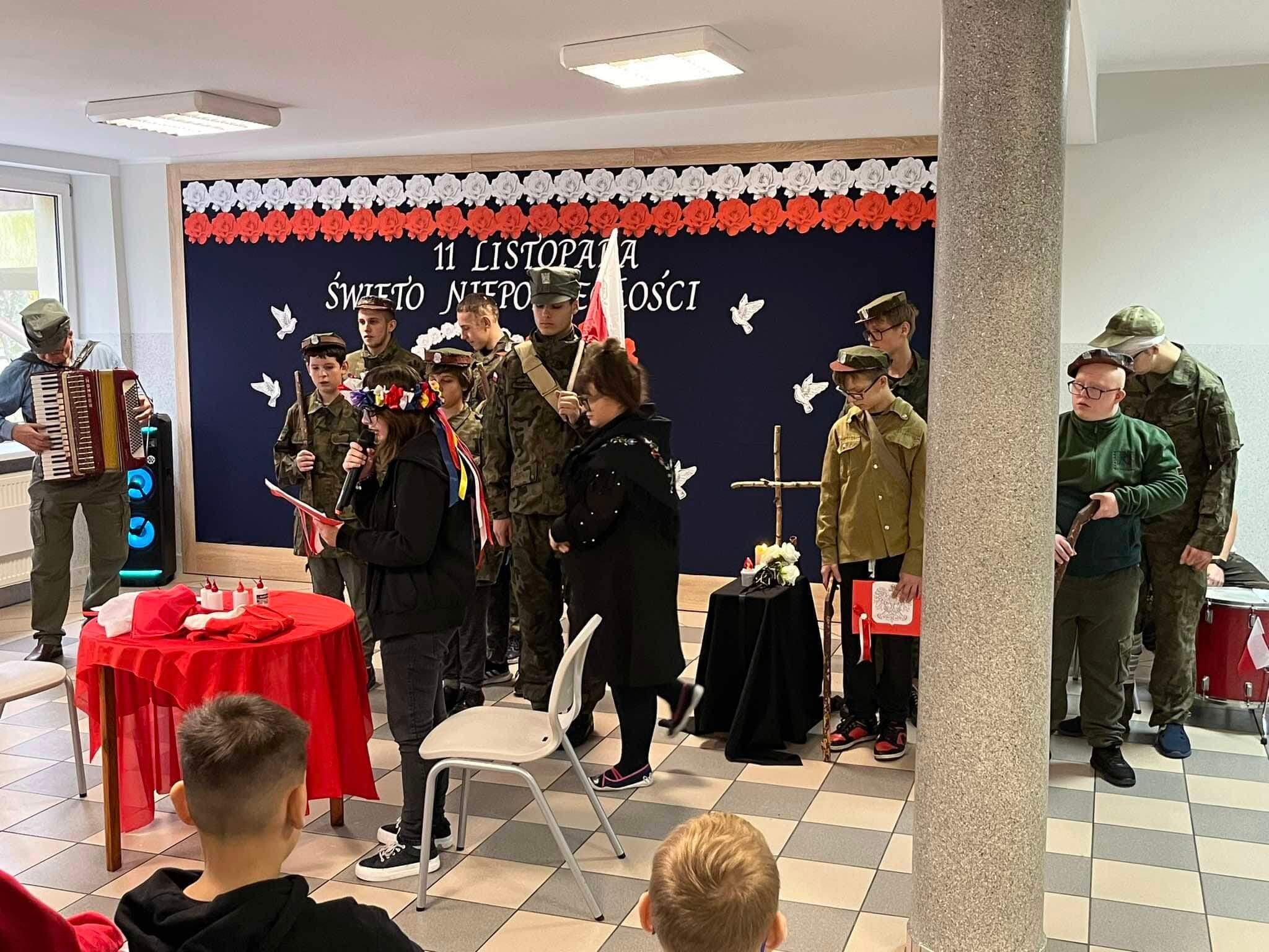Narodowe Święto Niepodległości Szczegóły Kategoria: Młodzieżowy Ośrodek Socjoterapii Utworzono: 11.11.2024 8 listopada 2024 r. odbył się uroczysty apel z okazji Święta Niepodległości, na którym nasi wychowankowie zaprezentowali montaż słowno- muzyczny. Konkurs "Piękno słowa czytanego" Projekt „Walczymy o wysoką kulturę czytelniczą”