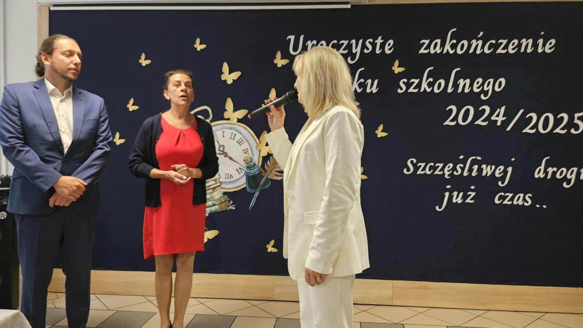 Pani Dyrektor w swoim przemówieniu serdecznie pogratulowała wszystkim uczniom osiągnięć i sukcesów, a także wyraziła podziękowania nauczycielom oraz pracownikom szkoły za ich zaangażowanie i trud włożony w edukację i wychowanie młodego pokolenia. Na zakończenie życzyła wszystkim bezpiecznych, radosnych i pełnych zasłużonego odpoczynku wakacji.