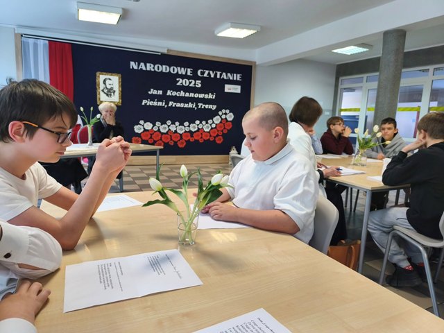 W tym roku wspólnie pochyliliśmy się nad twórczością Jana Kochanowskiego – jednego z najwybitniejszych poetów polskiego renesansu. Uczniowie i nauczyciele czytali wybrane Treny, fraszki oraz pieśni, poznając głębię emocji i piękno języka epoki.