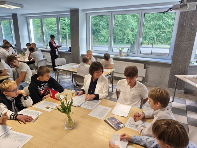 29 września 2025 r. o godzinie 11:00, w naszej szkole odbyło się wyjątkowe wydarzenie w ramach ogólnopolskiej akcji Narodowego Czytania. Spotkanie rozpoczęła pani Marzena – szkolna bibliotekarka, która serdecznie powitała wszystkich uczestników oraz odczytała okolicznościowy list od Prezydenta Rzeczypospolitej Polskiej.
