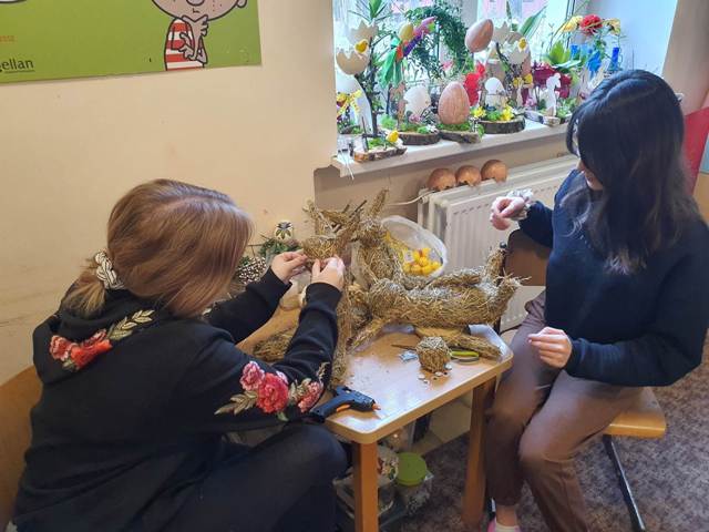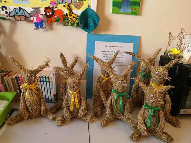 Zajęcia z rękodzieła Szczegóły Kategoria: Szkoła przyszpitalna Utworzono: 13.05.2023 3 marca w szpitalu, w ramach przygotowania dekoracji świątecznych odbyły się zajęcia z rękodzieła - uczyliśmy się robić zające z siana. Słodkości- warsztaty Przygotowania do Wielkanocy