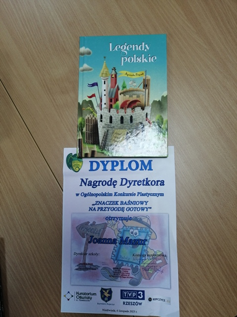 Na VIII OGÓLNOPOLSKI KONKURS PLASTYCZNY „ZNACZEK BAŚNIOWY NA PRZYGODĘ GOTOWY” wysłaliśmy 3 prace. Miło nam, że nasza wychowanka Joanna M. z kl.V (Szkoła Przyszpitalna) zdobyła NAGRODĘ DYREKTORA. Joanna wykonała pracę plastyczną na podkładzie z kaszy manny. Gratulujemy !!!