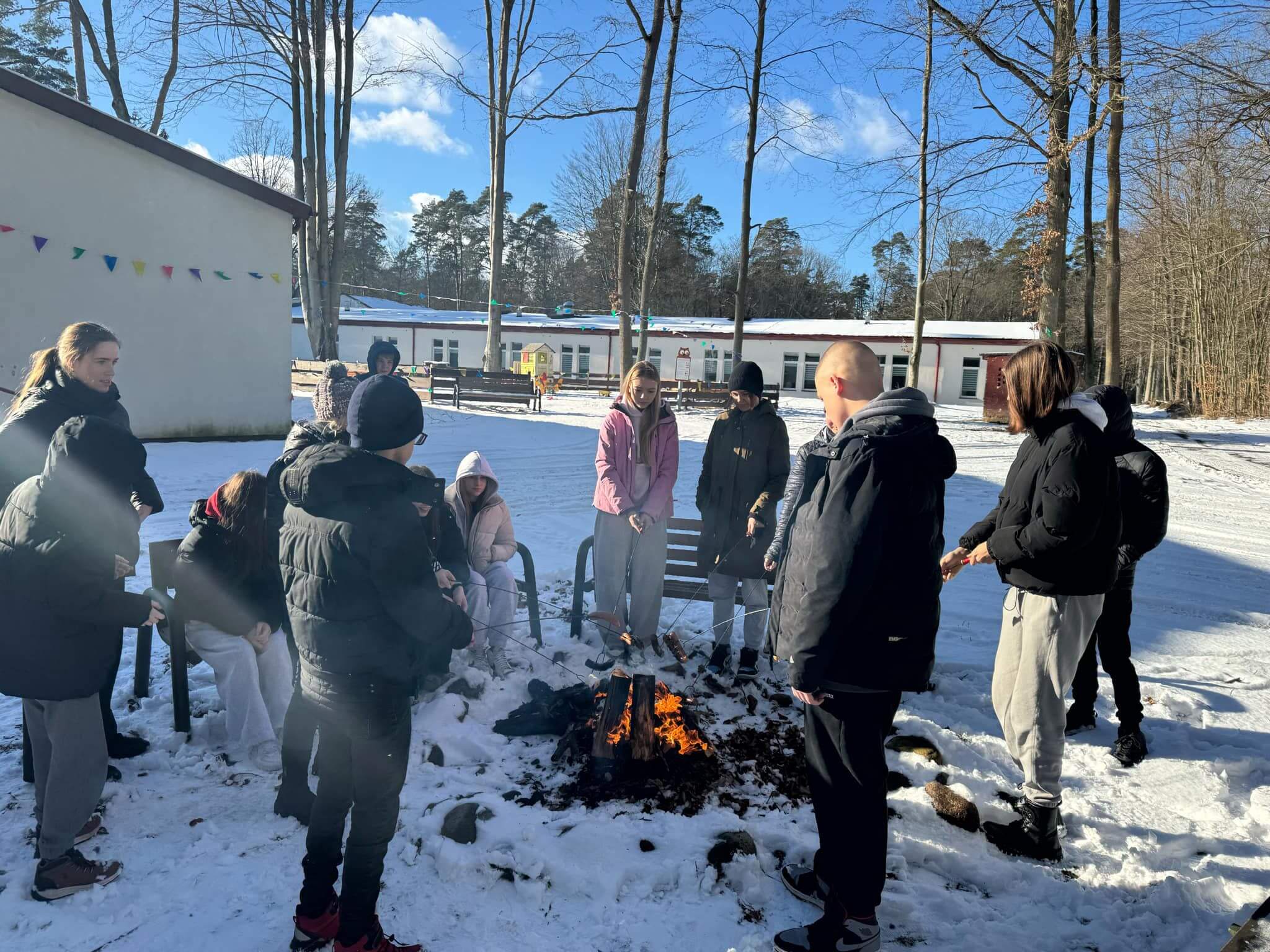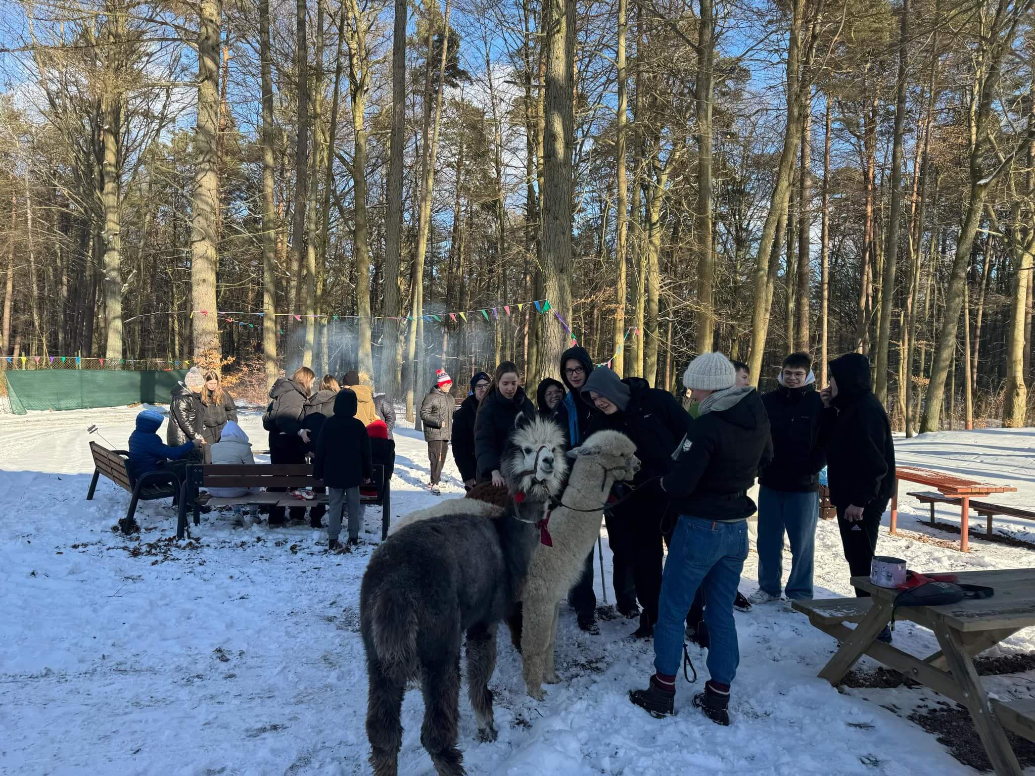 Jednym z niezapomnianych momentów było wspólne pieczenie kiełbasek przy ognisku. Dzieci miały okazję spotkać alpaki, co było dla nich wielką atrakcją. Kontakt ze zwierzęciem wywołał wiele radości i uśmiechów.