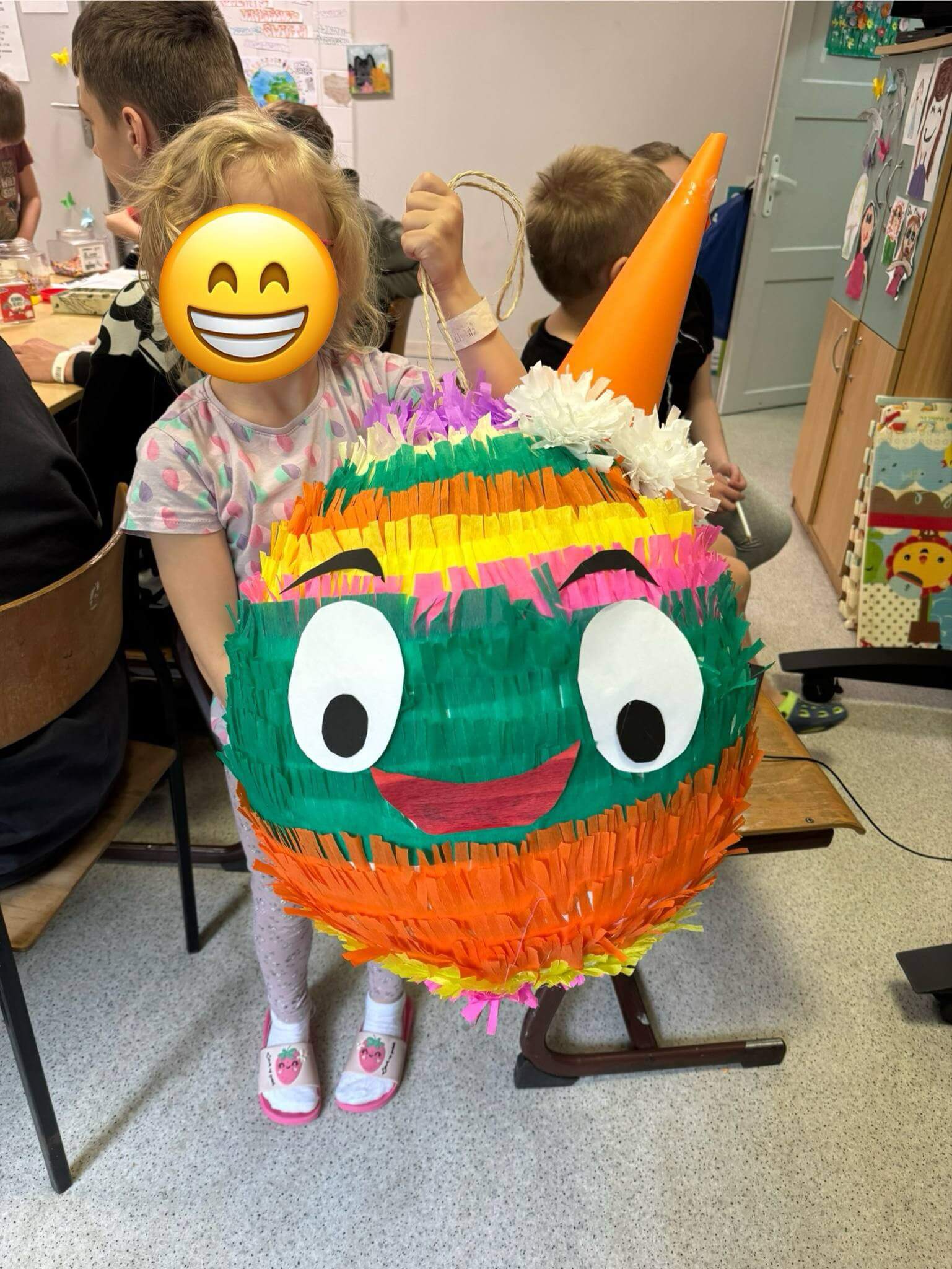 Piniata - warsztaty Szczegóły Kategoria: Szkoła przyszpitalna Utworzono: 06.06.2025 Uczniowie szkoły przyszpitalnej nauczyli się robić piniaty. Z zaangażowaniem kleili, ozdabiali i wypełniali je niespodziankami. Było twórczo, radośnie i bardzo kolorowo! Dni Przeciwdziałania Przemocy Rówieśniczej Prezenty na Dzień Dziecka