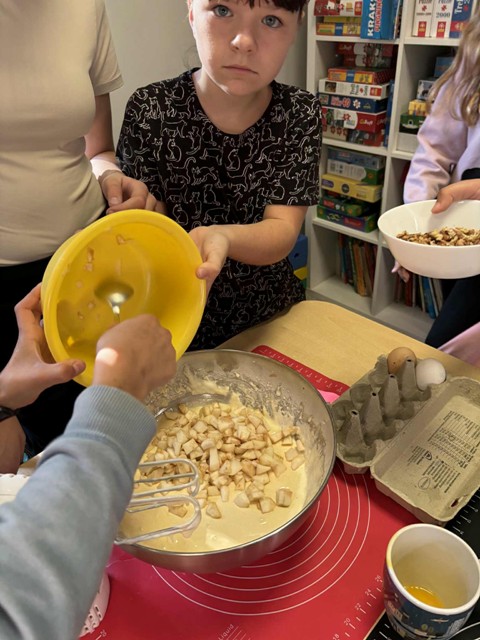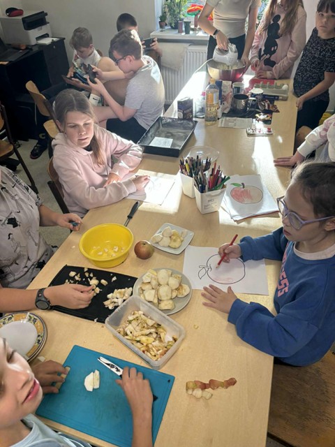 25 września 2025 r. w czwartkowe popołudnie dzieci ze szkoły przyszpitalnej miały mnóstwo atrakcji. Najpierw odbyliśmy spacer z alpakami, a później w świetlicy obchodziliśmy Dzień Jabłka. Było dużo śmiechu i zabawy a na zakończenie upiekliśmy oczywiście szarlotkę.