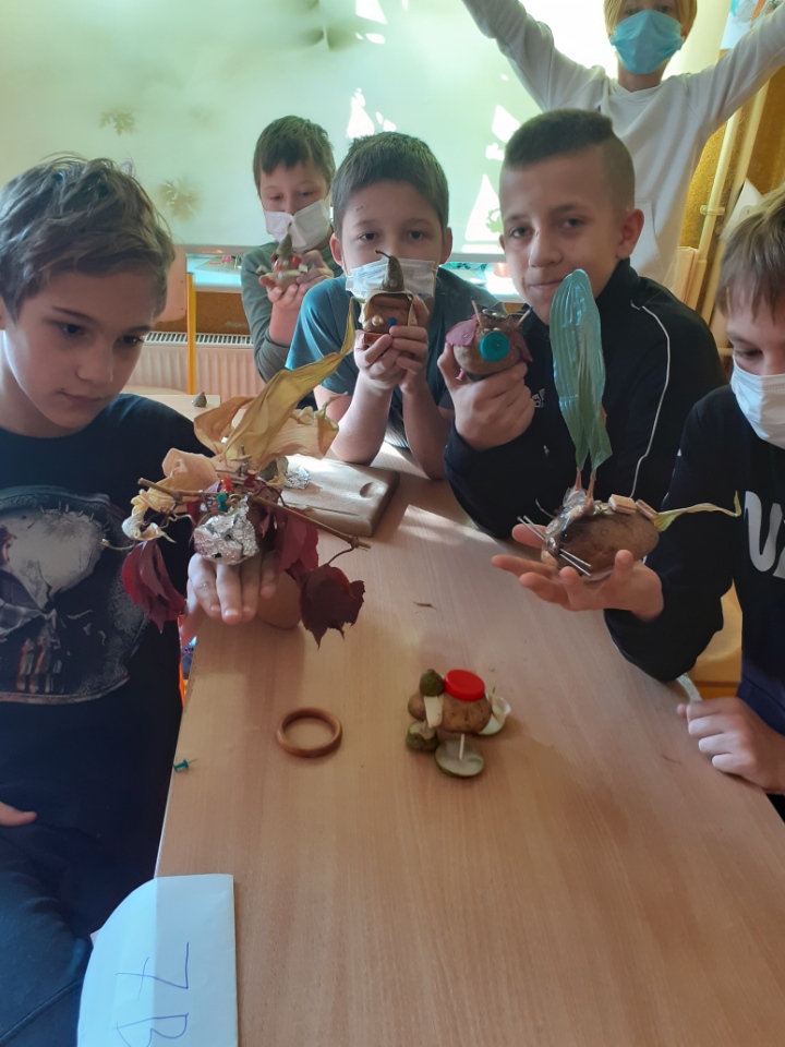 W trakcie spotkania uczniowie poznali budowę ziemniaka, skąd pochodzi oraz jak jest nazywany w różnych regionach naszego kraju, rozwiązywali testy, krzyżówki i rebusy dotyczące ziemniaka. Uczniowie mieli za zadanie wykonać „Ziemniaczane Dziwadełko”, pomysłowości im nie brakowało.